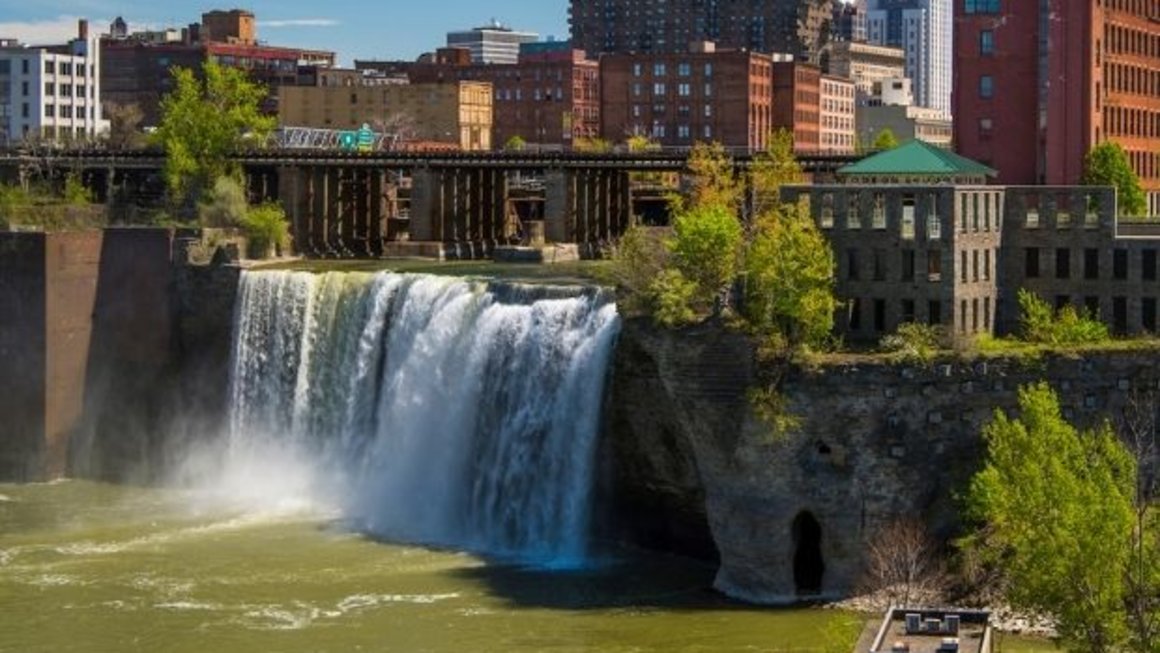 95-ft waterfall producing hydroelectric power in the middle of Rochester. Read more